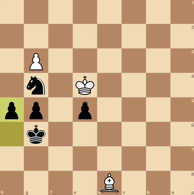 For these reasons, I’d be surprised (and concerned, and perhaps even suspicious) if this was on anybody’s first list of candidate moves. So, rather than explain why this move is right, I’m going to start with explaining what’s wrong with the move played in the game: 59. … h5?.